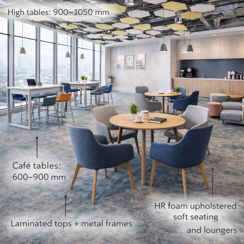 Collaboration furniture supports informal discussions and teamwork with flexibility and light mobility for dynamic workplaces.