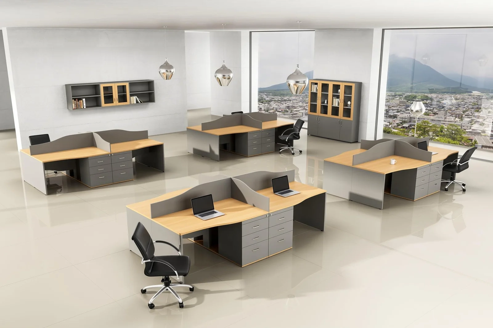 Modular furniture for flexible space utilization. Sustainable material choices.